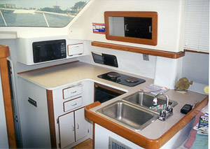 The entire boat is cooled with a single, off-brand name A/C unit that does not do the job of cooling the boat in Florida. And there are other things that have been short-changed, such as the bottom of the line electric head unit, a galley sink faucet that dumps water on the counter top rather than in the sink because the fixture is too small, plus an off-brand reefer.